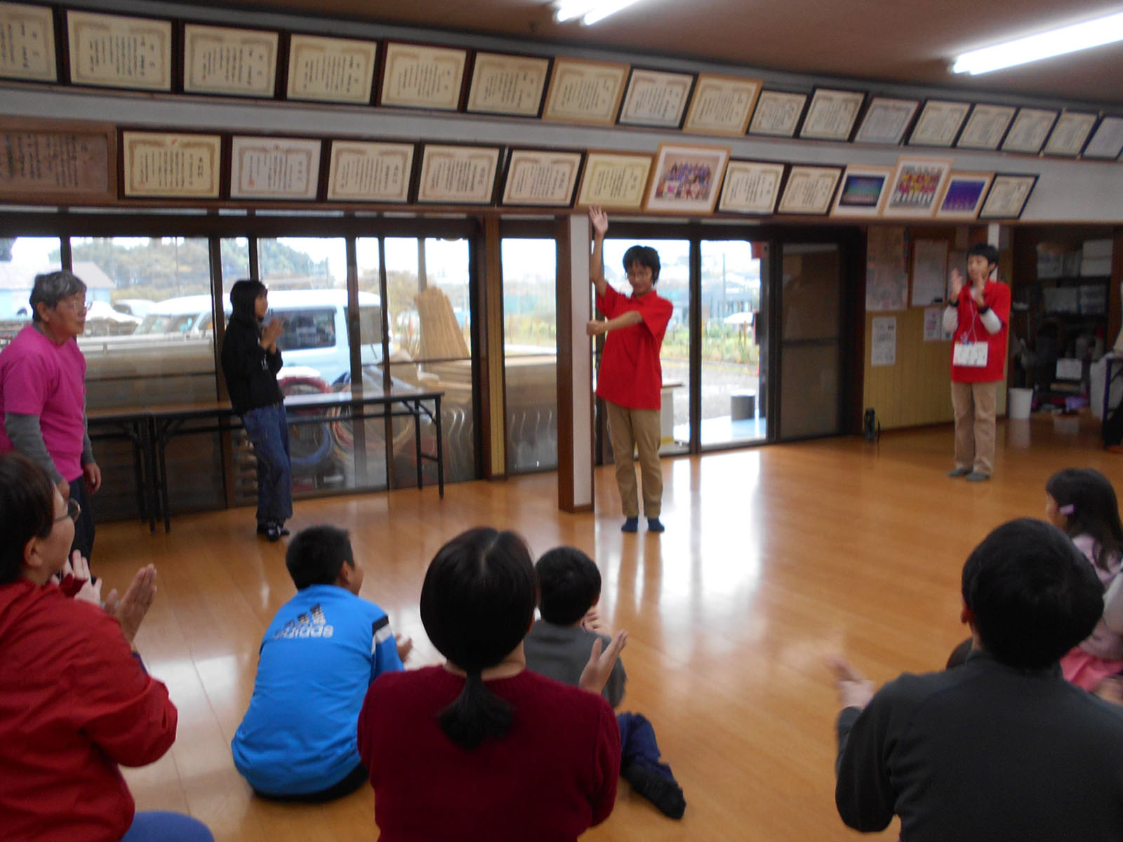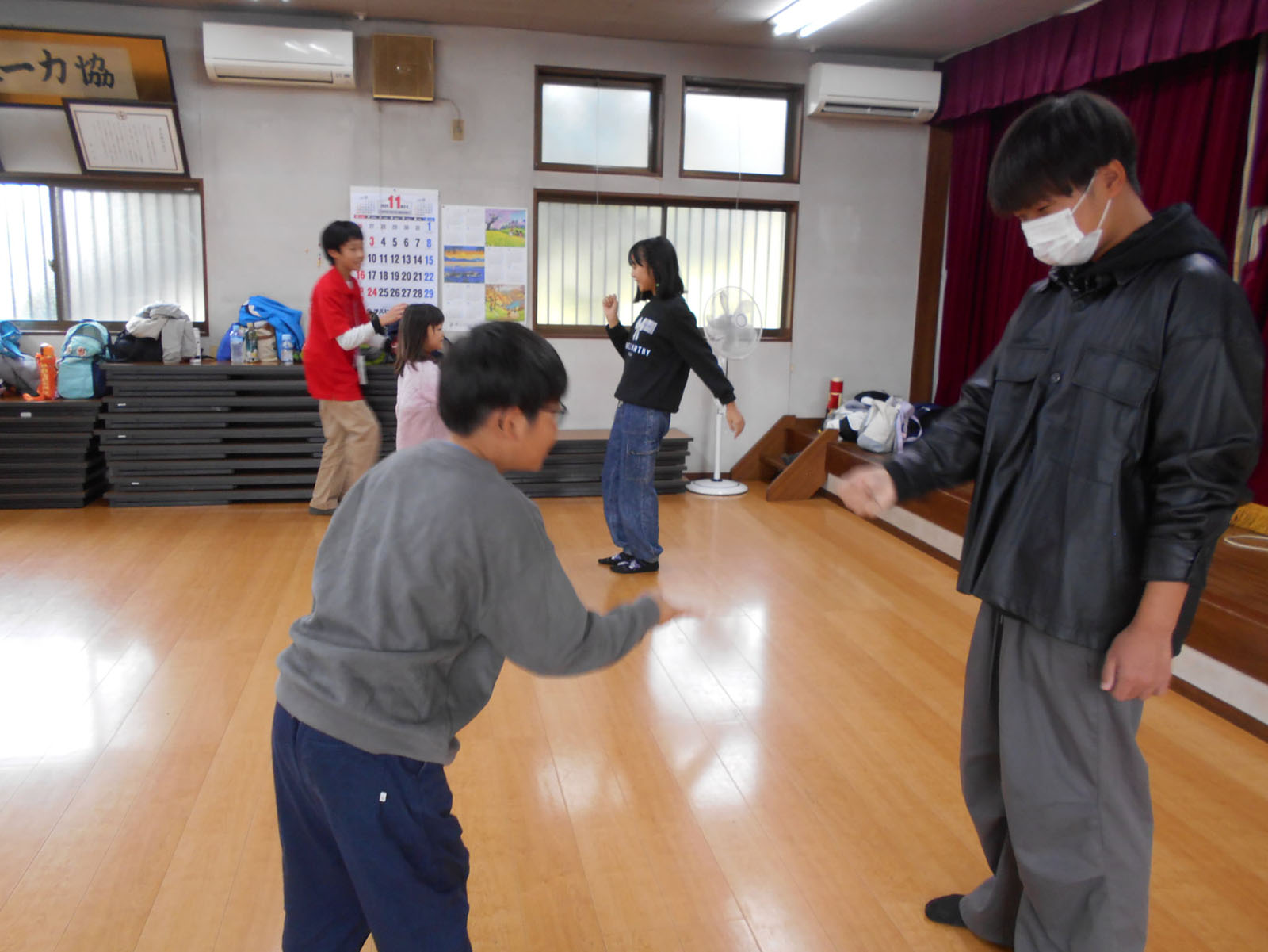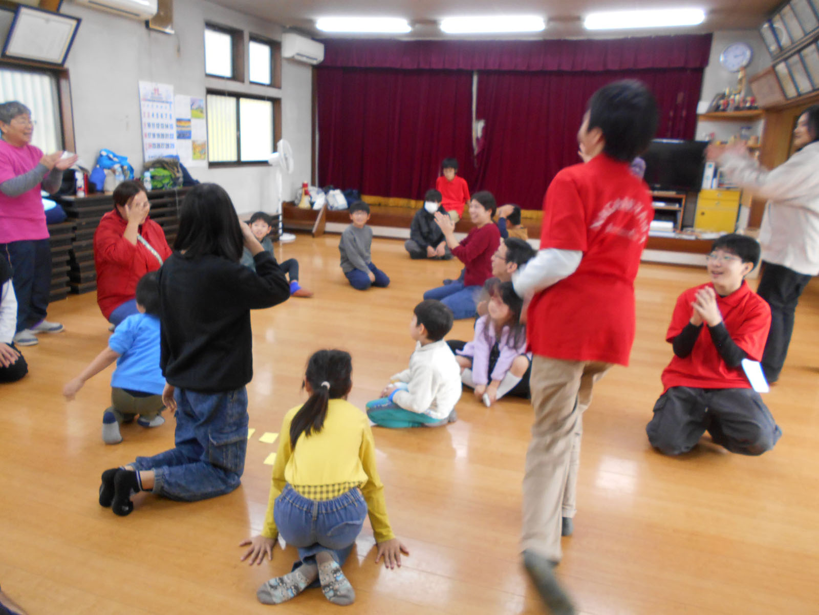第3回『みんなであそぼう』 デイキャンプ 2025年11月9日 11月9日(日)9:30~12:00 げんき村キャンプ場 今回は、雨天のため、げんき村キャンプ場での活動でしたが、自治会館で28名参加で、リーダースによるレクを楽しみました。「月とロケット」の手拍子から始まりました。6種類のレクを、リーダースの指導で楽しみました。方向音痴では、リーダースの手拍子で左右前後に動くのですが、なぜか方向が違っている人がいて、みんなで大笑い。最後の関所では、なかなかじゃんけんに勝てなくて何度もじゃんけんを繰り返すチームもありました。レクでおなかが空いた所で、キャンプ場で焼いた焼きいもが出来上がり、焼きたてを試食して、おみやげにも持ち帰り、子ども達はうれしそうでした。また次回もリーダースのお兄さんお姉さんとあそぼうね。 方向音痴 じゃんけん列車 全員がつながって カードを集めて じゃんけんぽん Tweet Share